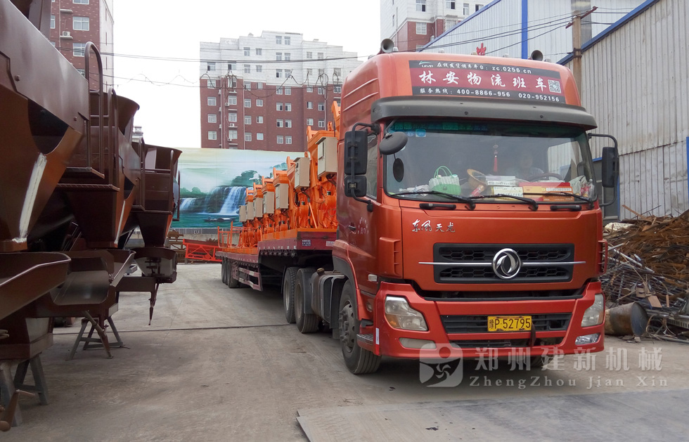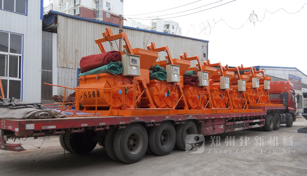 2015年7月13日,發(fā)往廣西的小型攪拌機(jī)準(zhǔn)備出發(fā)。型號(hào)為JS500強(qiáng)制式攪拌機(jī),數(shù)量為7臺(tái)。
